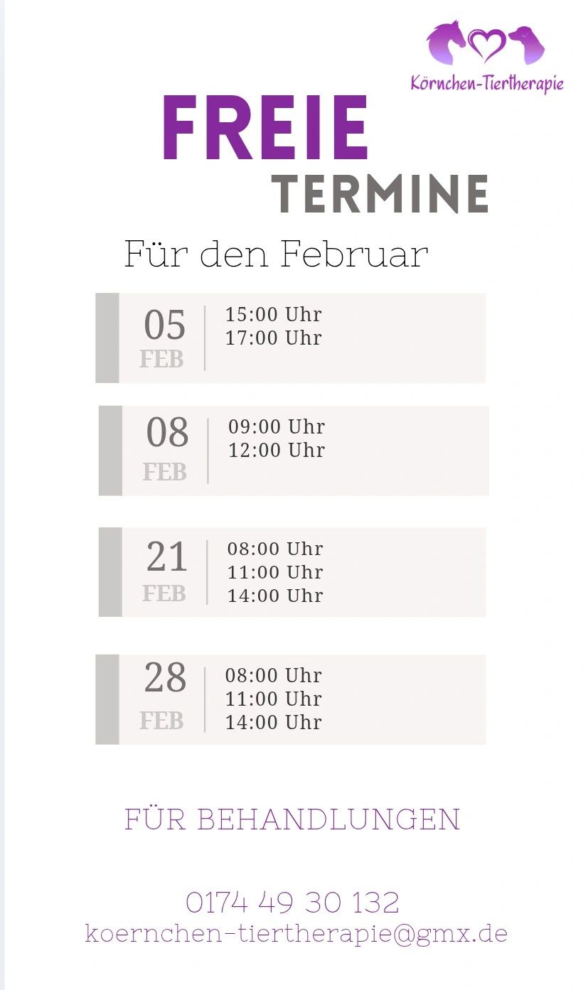 0174 49 30 132 koernchen-tiertherapie@gmx.de Ich führe eine mobile Praxis und ich habe keine Praxisräume. Die Behandlungen finden bei dir zu Hause oder im Stall statt. Kleinunternehmer nach der Kleinunternehmerregelung § 19 UStG.